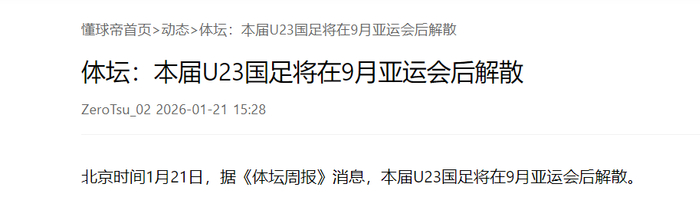 另外,《体坛周报》确认本届U23国足将在亚运会结束后解散,意味着本届U23亚洲杯结束之后暂时保留队伍。