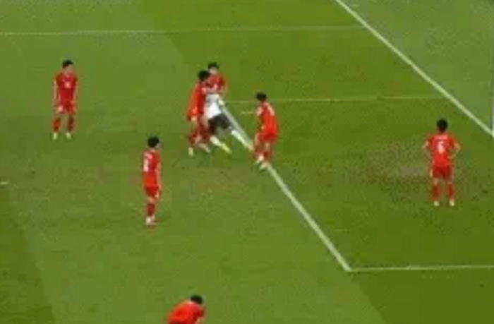 第74分钟,彭啸破门之后,拜合拉木从球网里捡起来往前跑,结果3号范理德朝着他就来了一个右摆拳,拜合拉木应声倒地!