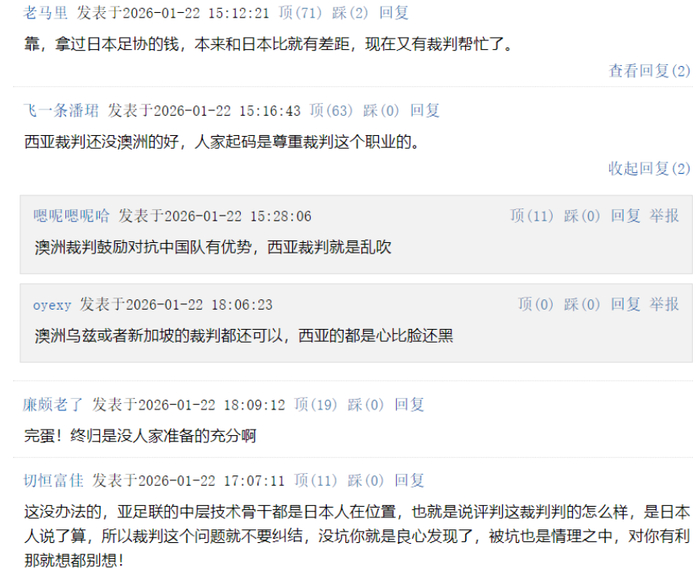 ——澳洲乌兹或者新加坡的裁判都还可以,西亚的都是心比脸还黑