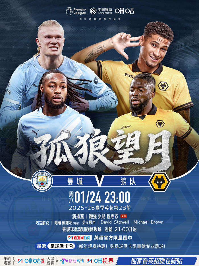 今晚U23国足将在决赛中对阵日本,而曼城在同一时间对阵狼队