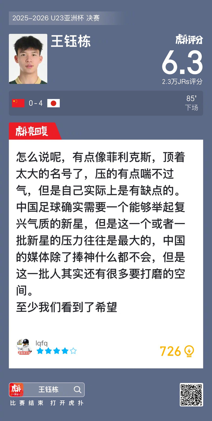 看完球的来说说看,王钰栋本场比赛踢得如何?