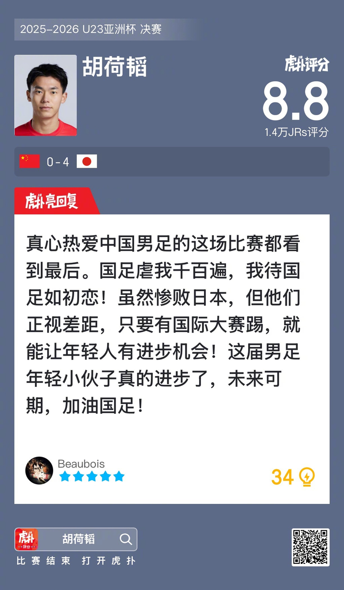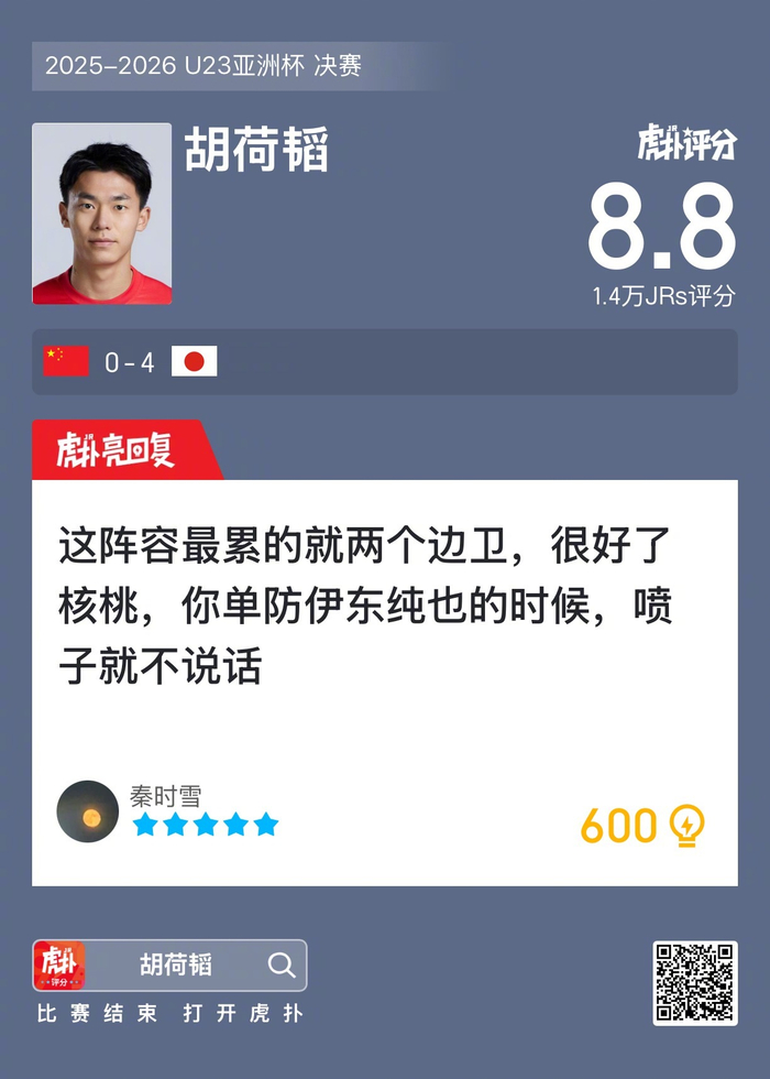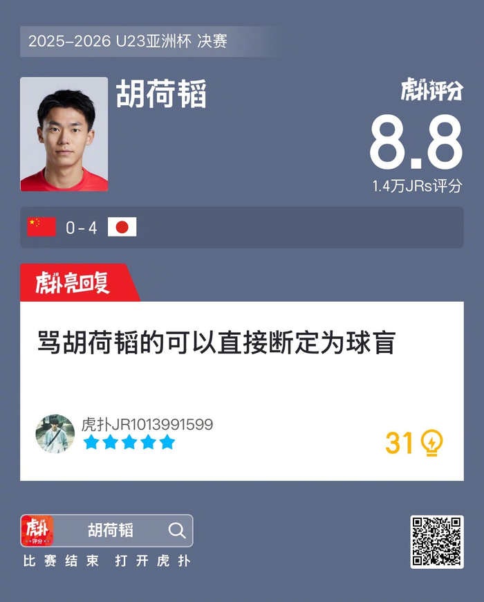 胡荷韬本场比赛收获8.8的虎扑评分!
