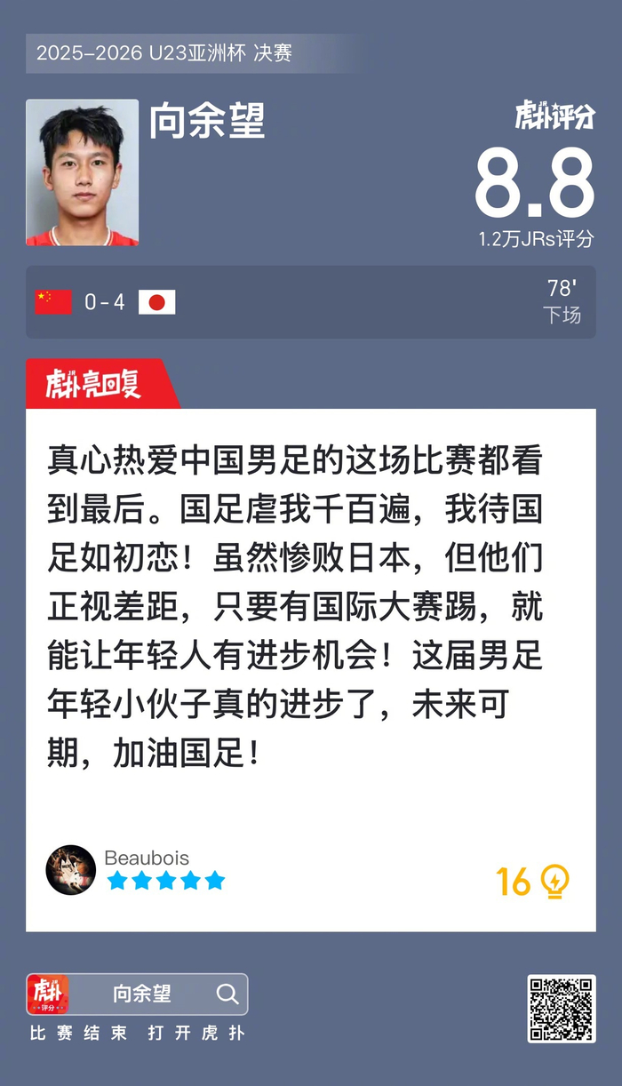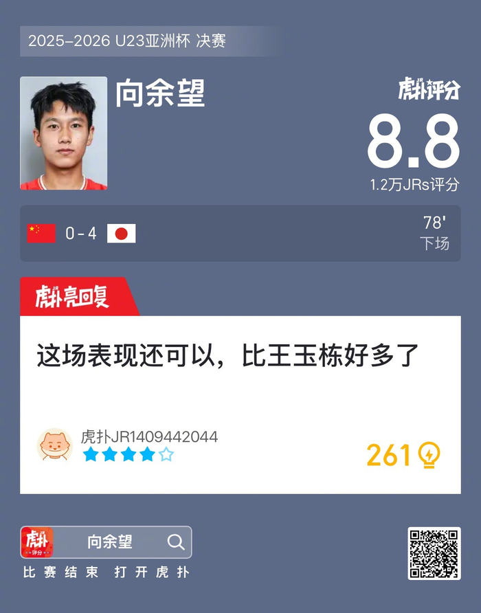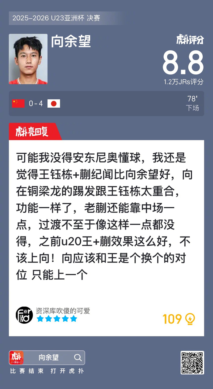 向余望本场比赛的表现,你觉得如何?