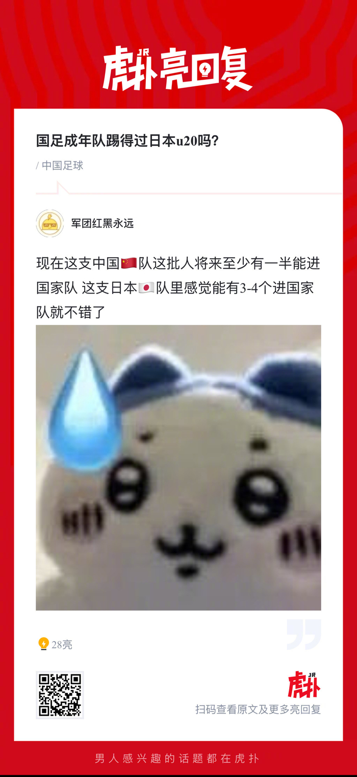 你觉得现在的国足成年队踢得过日本u20吗?