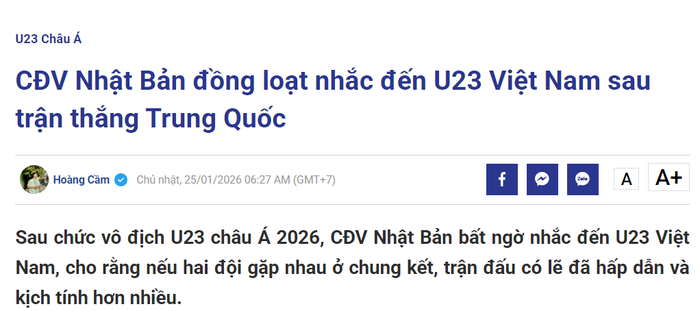 另外一家越南媒体《thethao》指出日本球迷在日本队获胜之后,提到了越南队,包括“如果我们在决赛中遇到U23越南队,也许我们会看到一场更紧张、更有吸引力的比赛。越南队充满了活力和战斗精神。”