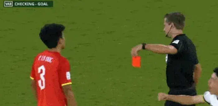 值得提醒的是,在昨晚越南队与韩国队的三、四名决赛中,越南队队长阮庭北也再次吃到一张红牌!他在铲球时,直接亮出鞋钉(没有收脚),蹬踏在韩国队球员小腿上。当值主裁判,直接出示红牌将其罚下。
