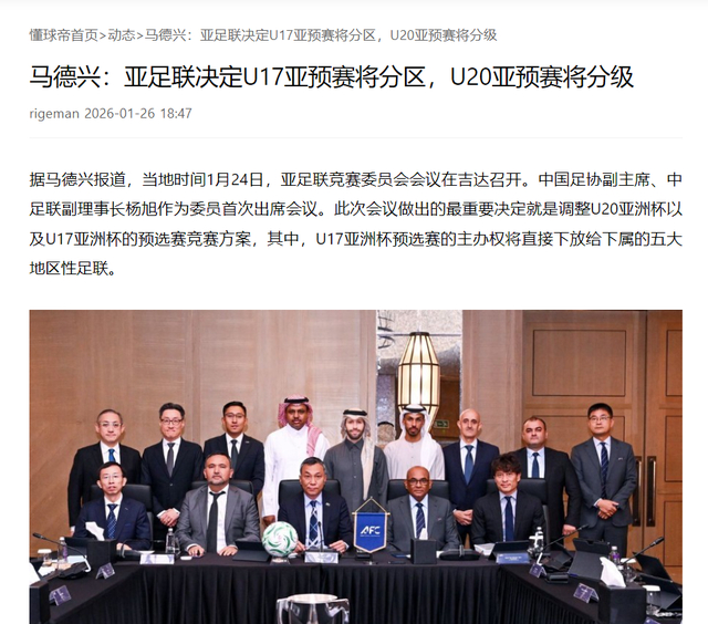 就在U23男足亚洲杯决赛进行的时候,亚足联竞赛委员会会议在沙特吉达召开,此次会议做出的最重要决定就是调整U20亚洲杯、U17亚洲杯的预选赛竞赛方案,其中U17亚洲杯预选赛的主办权将直接下放给下属的五大地区性足联。