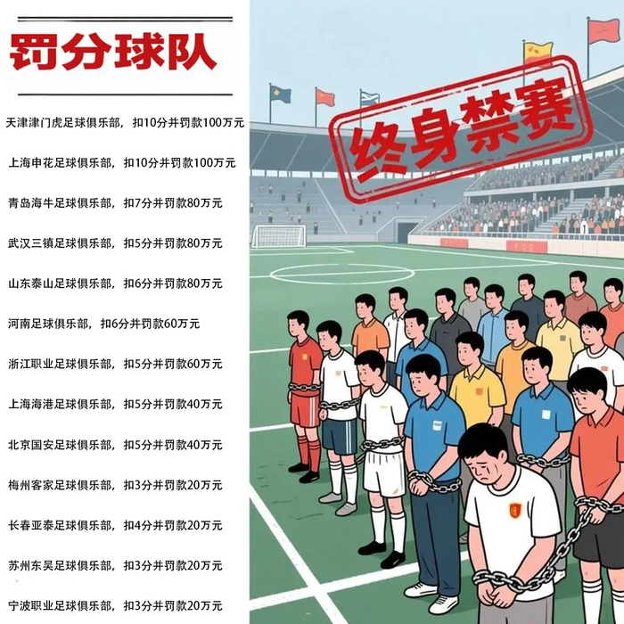 2026年1月29日,一个普通的日子,却注定要被钉在中国足球的耻辱柱上。当那份长达数页的罚单公之于众,冰冷的文字背后,是十三家俱乐部被扣上的“不正当交易”枷锁,是七十三位从业人员职业生涯的“终身禁足”墓碑。这不仅仅是一纸罚单,这是一次对中国足球躯体深处脓疮的彻底切割,是一场迟来已久的、刮骨疗毒式的自我救赎。