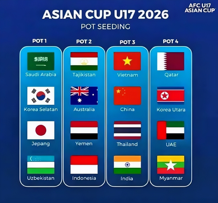 第21届U17亚洲杯决赛阶段的分组抽签仪式,将于2月12日,在吉隆坡举行,中国队位列第三档,本届U17亚洲杯将于今年5月7日至24日在沙特阿拉伯进行,届时16个队分成4个组,每组4个队组成,每个小组前两名晋级八强淘汰赛,同时获得2026年U17世界杯的参赛资格,也就是世少赛,将在卡塔尔举行。