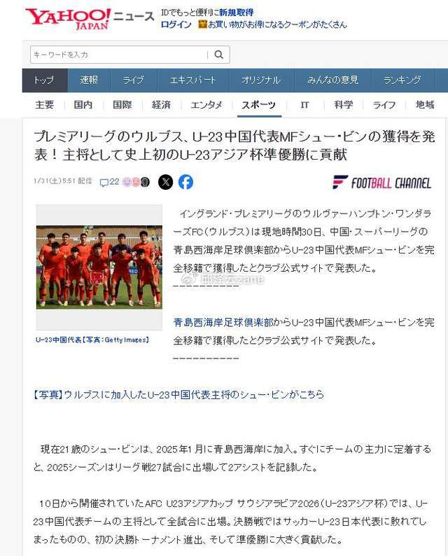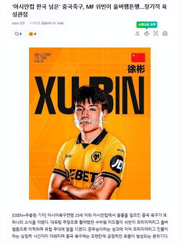 日韩媒体高度关注我们徐彬加盟狼队的消息,而且给出了非常高的评价。