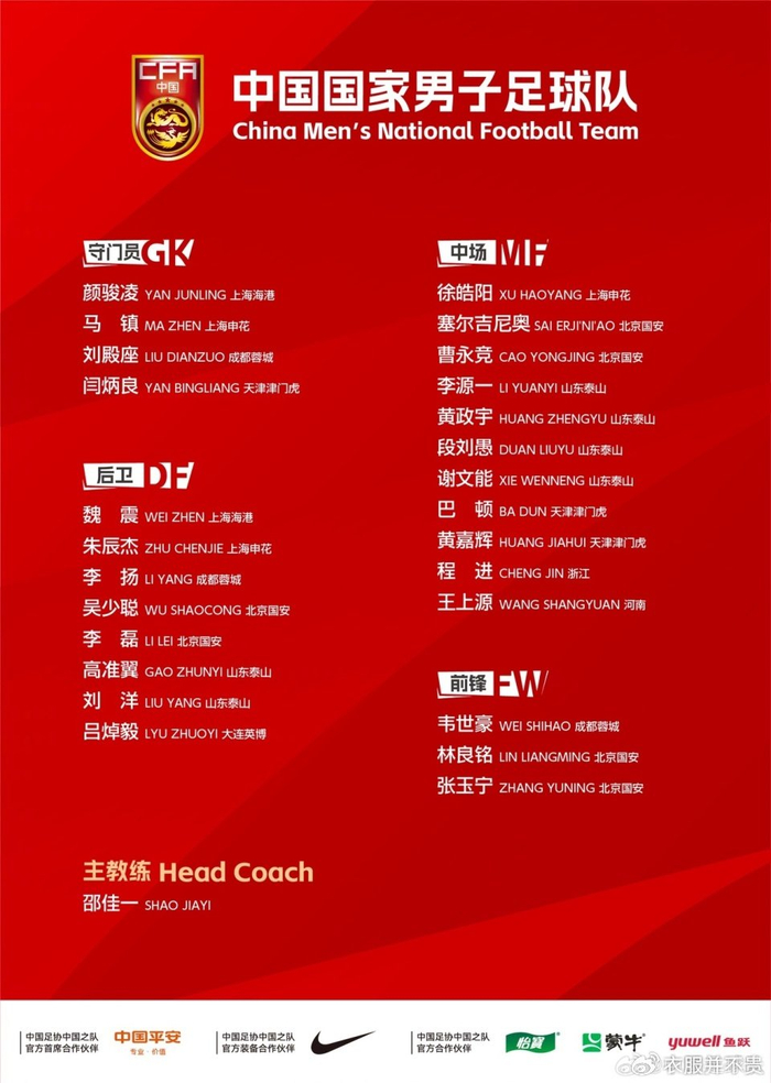 邵佳一首期大名单