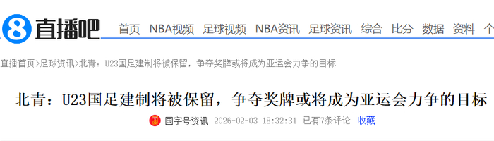 对于今年9月份开幕的亚运会,U23国足参赛的目标备受关注,北青体育最新消息称U23国足建制将被保留,球队在今年的名古屋亚运会上或将力争一枚奖牌,也就是前三名的成绩。