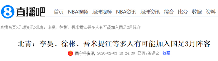 今天晚上,据北青体育的最新报道,为配合各队精心备战,中国足协与各队教练组已经分别设计好各队全年的备战与竞赛计划,其中U23国足成为近期足坛的焦点,该媒体强调邵佳一已经公开表态,会在3月份集训中征调部分U23国足的精英球员,如在U23亚洲杯赛上大放异彩的门将李昊、已经留洋英伦的后腰徐彬、防线上的吾米提江、胡荷韬、锋线的拜合拉木等。