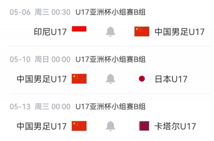 2月12日,2026年U17亚洲杯正赛结束了分组抽签,三天之后,也就是2月15日晚上,亚足联在官网公布了小组赛的具体赛程时间,中国男足U17的3场比赛都在凌晨0点及以后进行,对于国内球迷来说,观看需要熬夜。