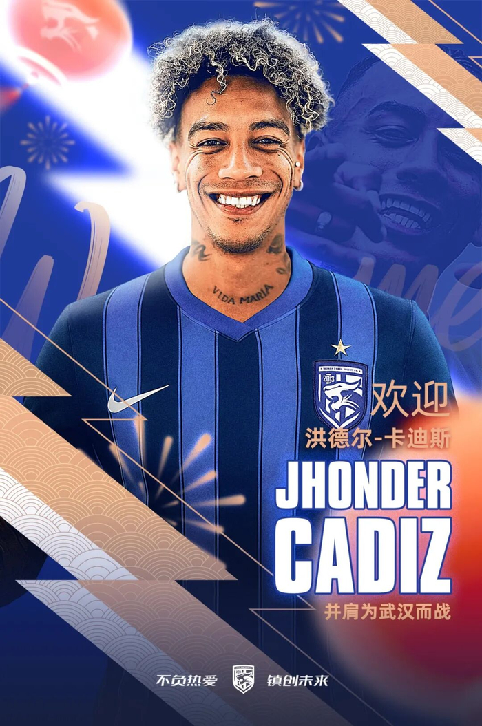 马年第一宣:委内瑞拉籍球员洪德尔-卡迪斯(Jhonder Cadiz)转会加盟武汉三镇足球俱乐部。