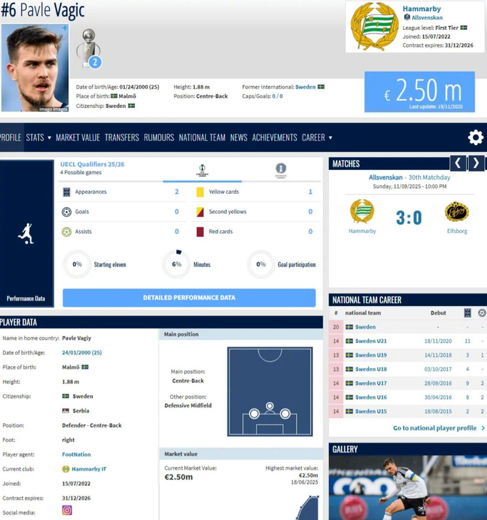自此之后,这位25岁的球员身披绿白战袍出战了81场比赛。瓦吉奇还拥有11次U21国家队出场记录,并在2022年夏天入选了扬内-安德森执教的瑞典国家队。