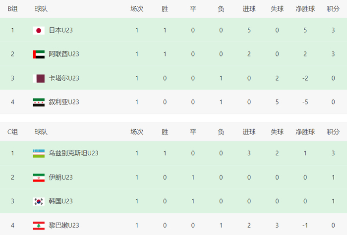 北京时间1月7日晚上到8日凌晨,2026年U23亚洲杯小组赛首轮结束第二个比赛日,总共四场对决,日本男足5-0大胜叙利亚男足、乌兹别克斯坦男足3-1战胜黎巴嫩男足、韩国男足0-0打平伊朗男足、卡塔尔男足0-2输给阿联酋男足,上演疯狂一夜。