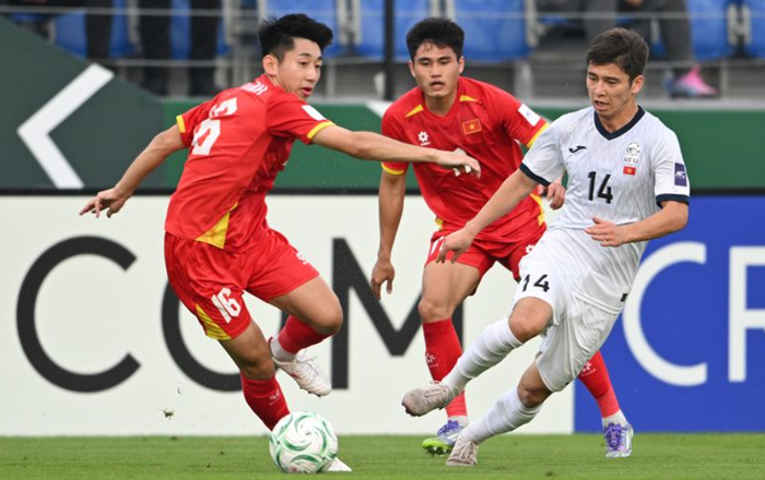 根据赛程,越南队和吉尔吉斯斯坦队的较量率先开打。上半场,越南队在控球率处于下风的情况下,凭借屈文康的点球破门,暂时1-0领先,但第44分钟遭到吉尔吉斯斯坦队的扳平,穆尔扎赫马托夫完成破门,也打进队史首个U23亚洲杯进球,因为这是吉尔吉斯斯坦队首次打进正赛阶段,创造了历史。