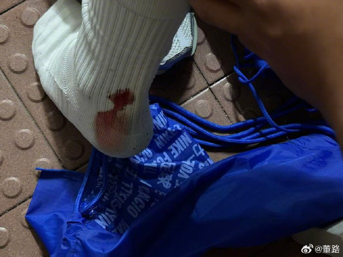 昨晚训练,#中国足球小将# 凯凯左脚脚后跟磨破渗血,奔跑困难,今天联赛替补。