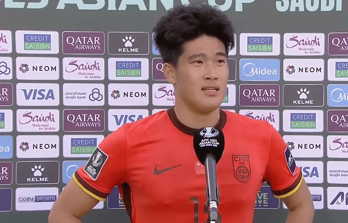 #U23国足1比0澳大利亚U23#赛后中国队球员彭啸接受媒体采访。