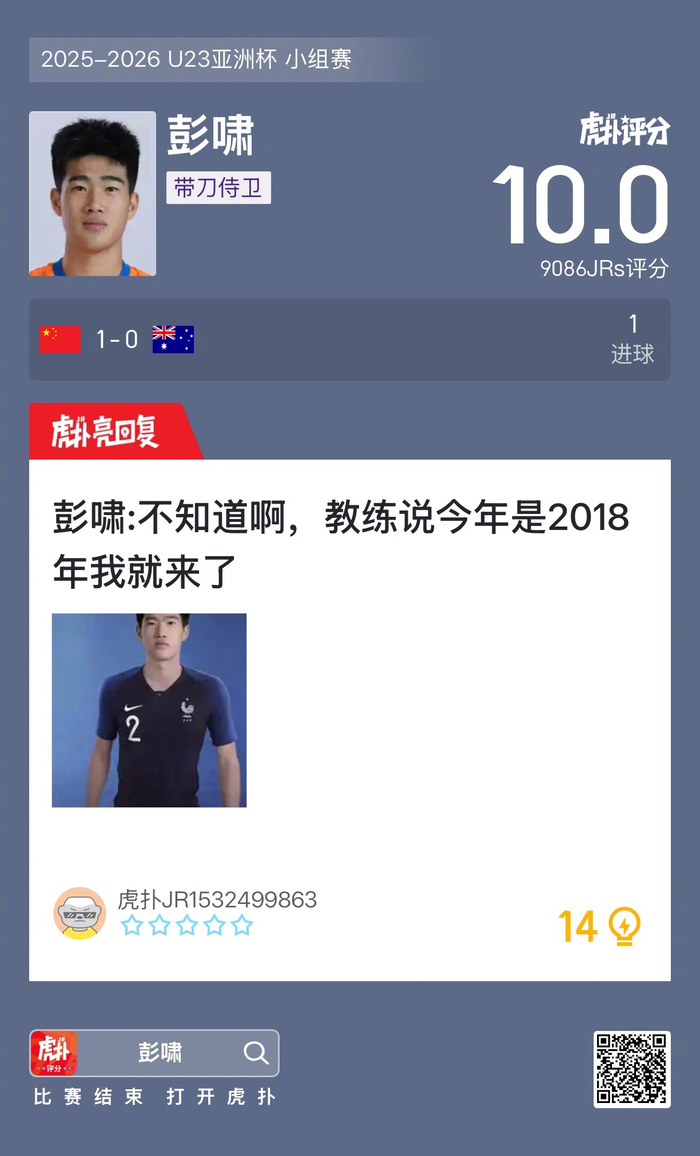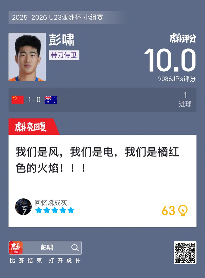 #U23国足1比0澳大利亚U23#彭啸打进一球立功!这场他的表现怎么吹?