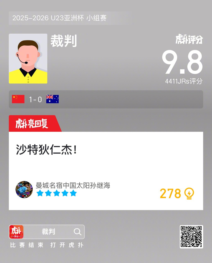 #U23国足1比0澳大利亚U23# 你觉得裁判本场判罚是否公平公正?