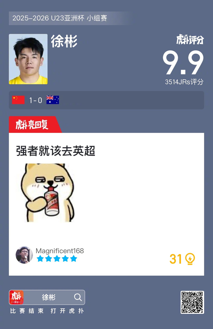 #U23国足1比0澳大利亚U23# 你如何评价徐彬本场的表现?