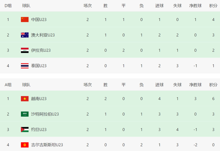 2026年U23亚洲杯小组赛第二轮全部结束,四个小组的积分排名出现有趣的一幕,就是排名小组第一的球队,全部来自东亚或者东南亚,西亚或者中亚全部没有,放在各个级别的亚洲杯也是十分少见。
