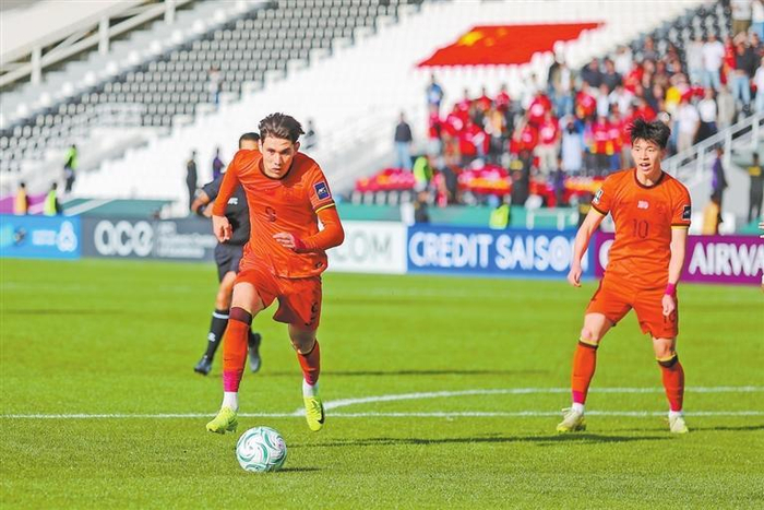 1月11日,中国队球员拜合拉木·阿卜杜外力(左)在比赛中。当日,在沙特阿拉伯利雅得举行的2026年亚足联U23男足亚洲杯D组小组赛中,中国队1∶0战胜澳大利亚队。新华社发