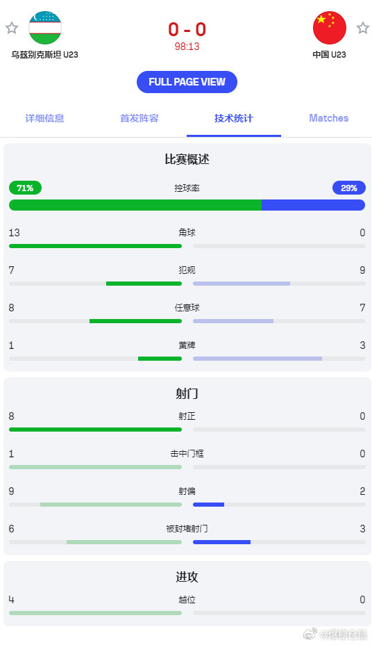 【#U23国足0比0乌兹别克斯坦进加时赛#】乌兹别克斯坦8脚射正,国足U23是0脚。