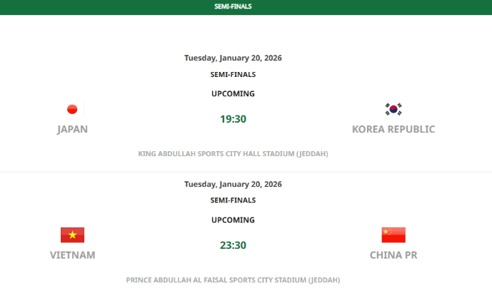 U23亚洲杯半决赛对阵:
