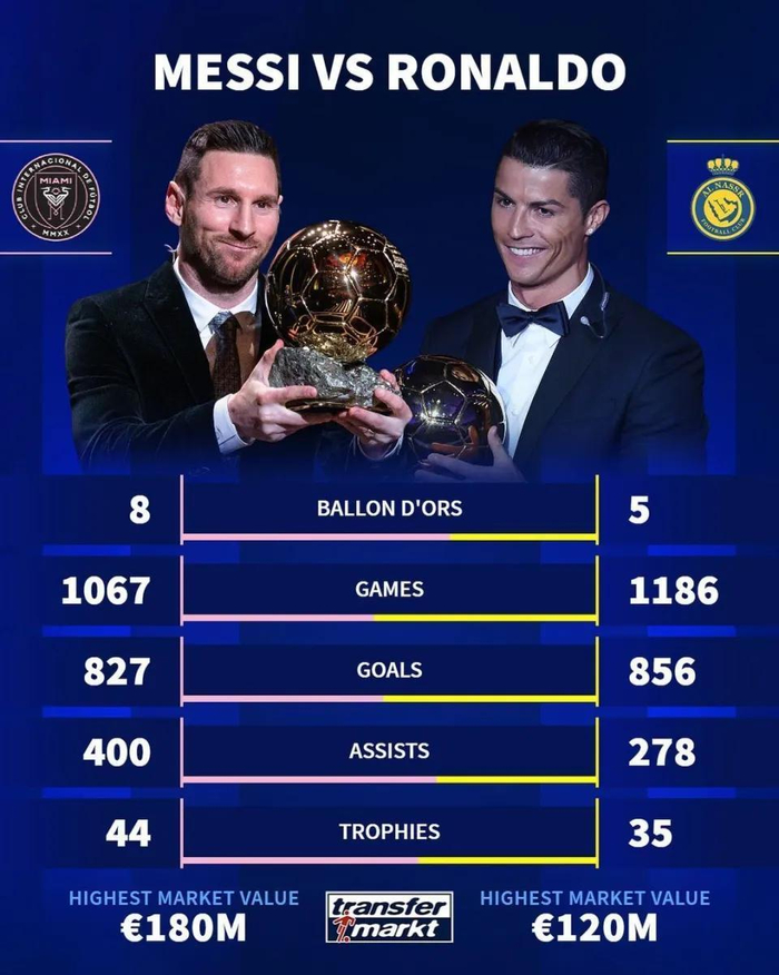 从历史地位的角度看,梅西已经基本锁定了"史上最佳"的称号,而C罗则仍在为这一目标苦苦挣扎。讽刺的是,越是执着于这一头衔,C罗离它就越远。而梅西恰恰因为不那么在意个人荣誉,反而收获更多认可。