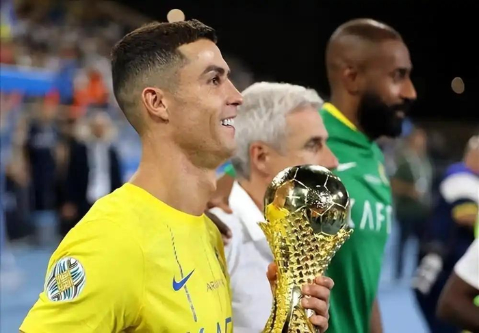 无独有偶,在香港举办的沙王杯决赛中,又一次面对点球大战,C罗这回则是完成了自己的使命后,破天荒地跪在了场边开始了祈祷模式,祈求上天能把这座沙王杯赐予给他。可惜上天依旧没能如他所愿,C罗加盟利雅得胜利三个赛季依旧毫无所获,在颁奖仪式之后,C罗随手就把自己的亚军奖牌摘下,顺手就送给了场边的一位记者,仿佛从此这个亚军不是他的似得了。