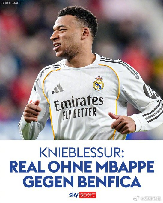 【大将缺席】《队报》:皇马前锋姆巴佩因伤退出训练,他将至少休息10天时间,无法参加对本菲卡的欧冠淘汰赛附加赛次回合的比赛。