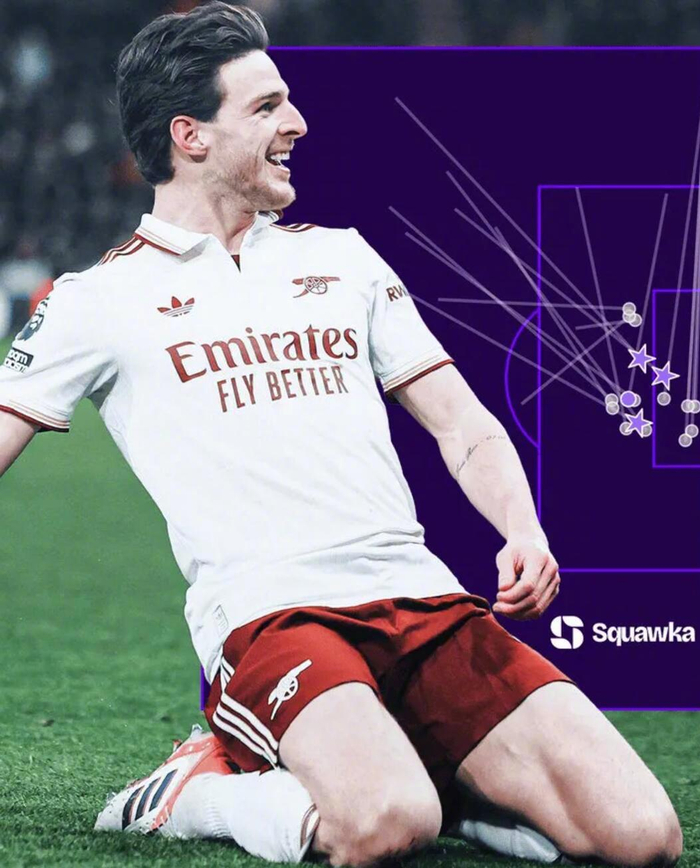 根据Squawka的统计,本赛季至今,德克兰-赖斯在各项赛事中创造的绝佳机会次数(21次)比其他任何英超球员都多。